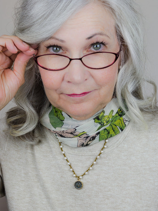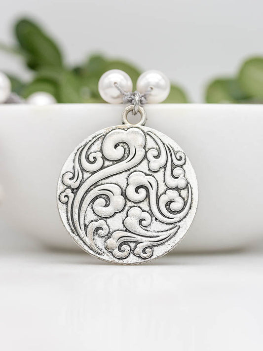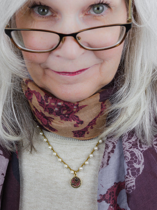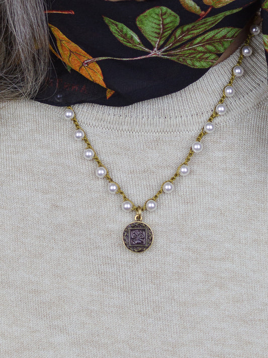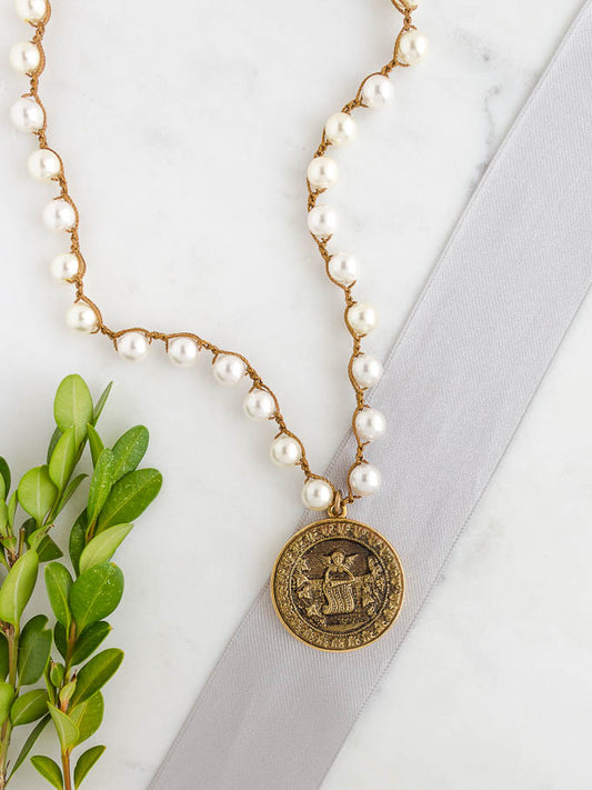 Vintage Grecian Cameo Necklace with Hand-Stitched Pearl Chain