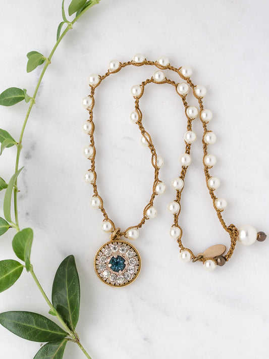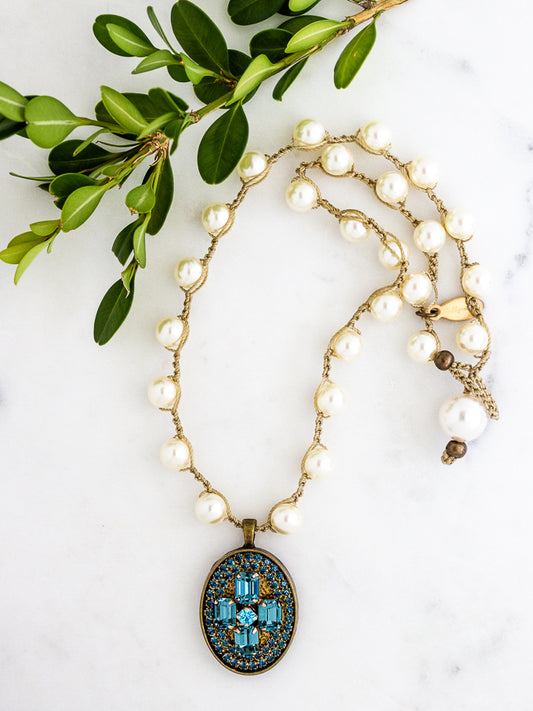 Treasure of the Month* Vintage Aquamarine & Rhinestone 1" Necklace
