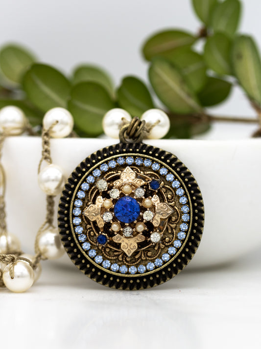 Small Equestrian Necklace with Blue Vintage Rhinestones