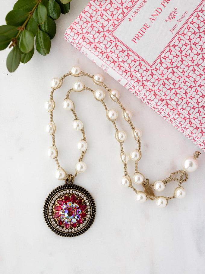 Fuchsia Rose Sparkling Vintage Pearl Necklace