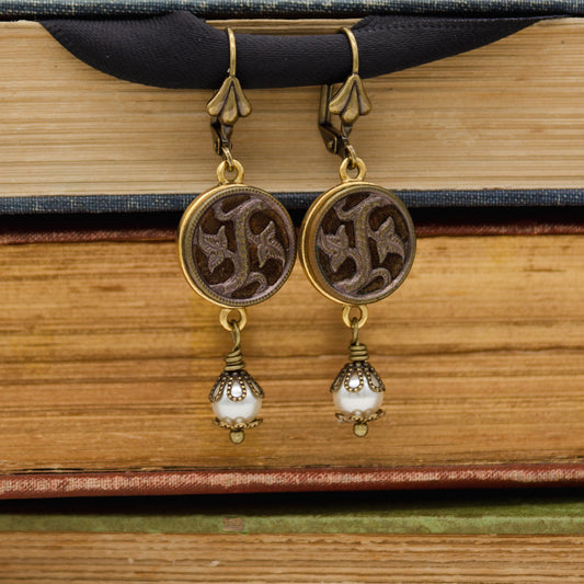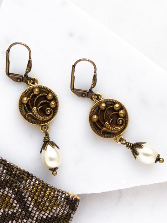 Petite Antique Victorian Button (c.1890-1910) Earrings-Flora Design with Pearl Drops