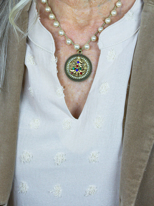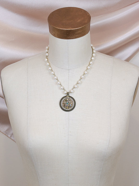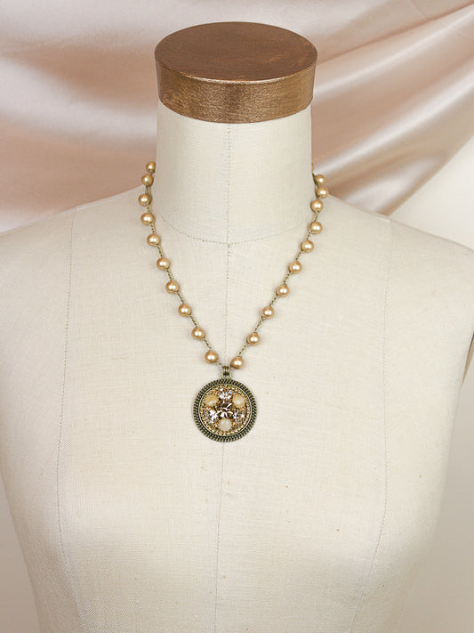 Shimmering Vintage Golden Necklace with Gold Pearls