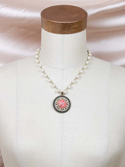 Coral, Gold & Pearl Vintage Repurposed Necklace