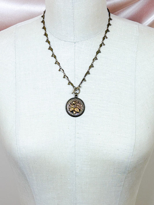 Leaves Antique Button Necklace with Chain