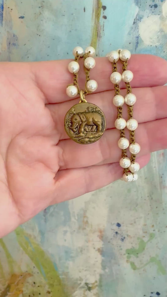 Elephant Petite Antique Button Necklace