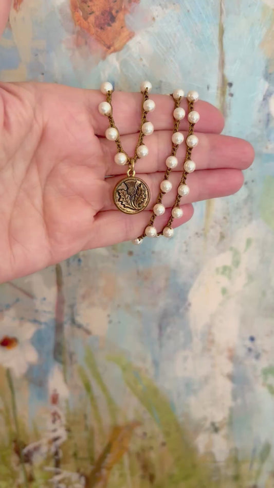 Gold Thistle Petite Antique Button Necklace