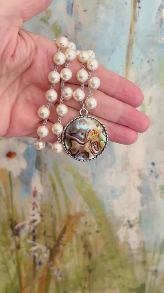 Sold outVintage Abalone Shell Pearl Necklace