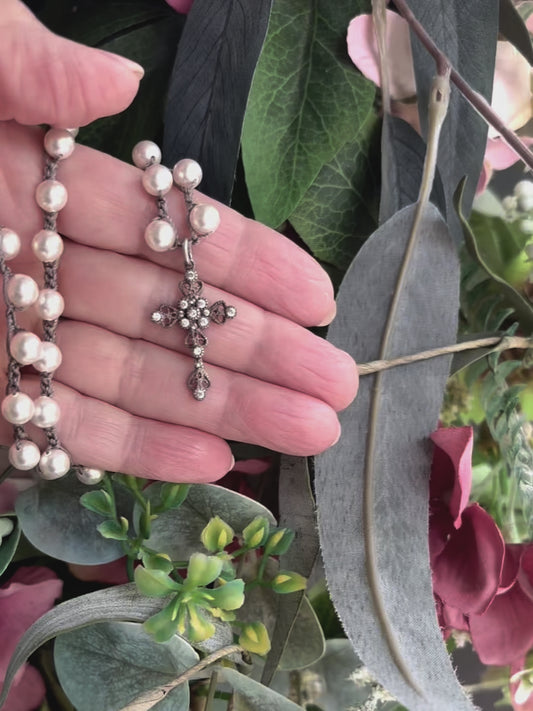 Sold outVintage Silver Cross Pearl Necklace