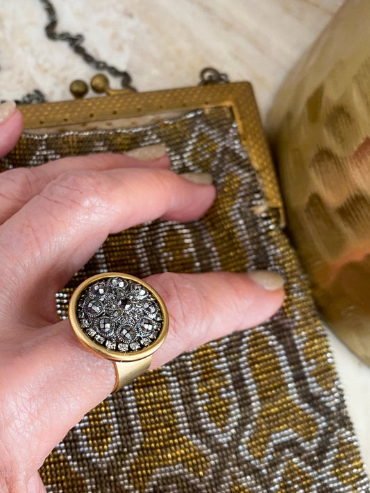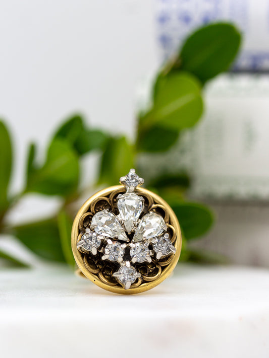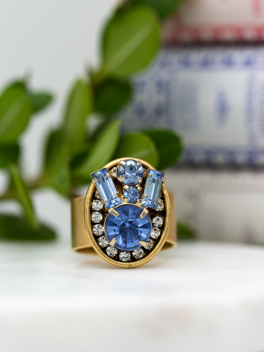 Light Blue Vintage Rhinestone Adjustable Statement Ring