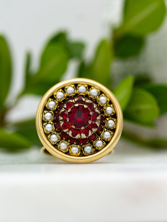 Aqua & Pearl Vintage Adjustable Statement Ring