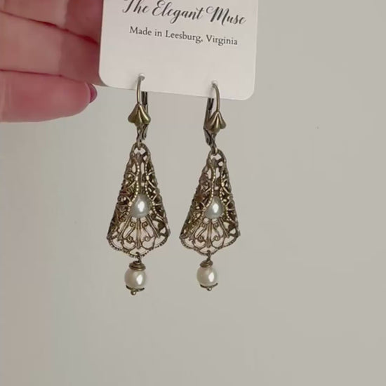 Wrapped Filigree and Pearl Earrings